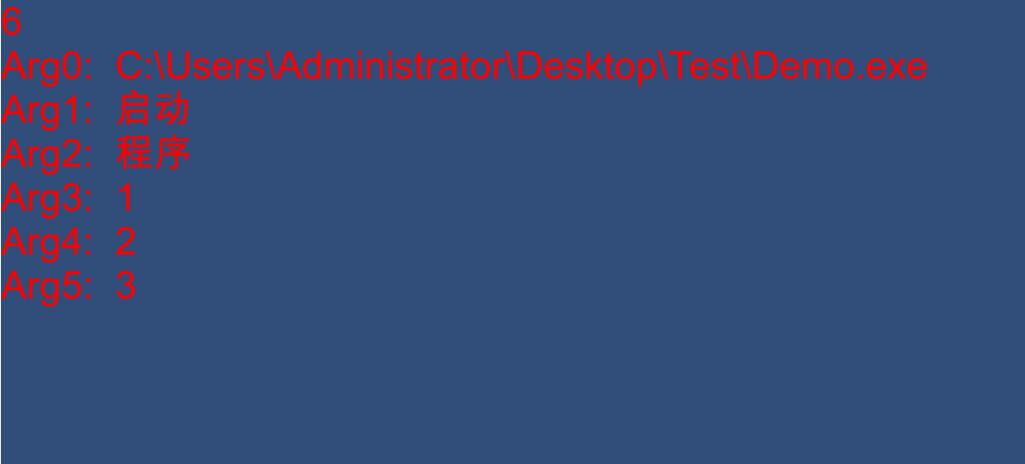 //启动时传过来的string数组,下标为0的是启动的外部exe程序的完整路径,下标为1及之后的参数是想要传过来的参数。