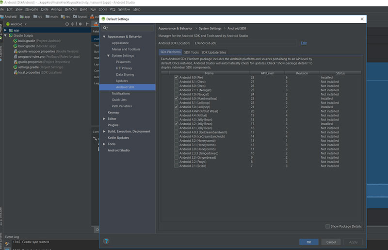 找到 Android SDK (Appearance & Behavior ->System Setting -> Android SDK)