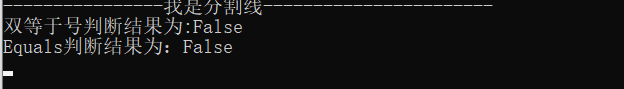 Console.WriteLine($"双等于号判断结果为:{(str1 == str2)}");