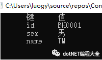 Console.WriteLine("t 键t 值");