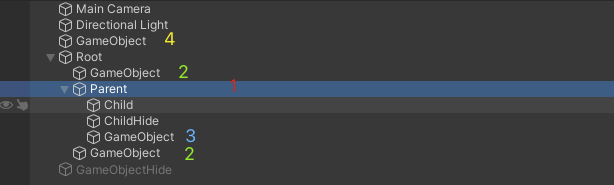 - 可以使用transform.parent.parent 的形式无限向上,然后再GetChild(),就达到了查找父层级或更高层级物体的目的