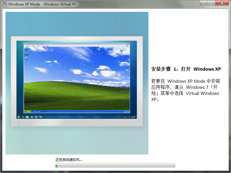XP Mode安装完毕之后,开始安装Windows Virtual PC(补丁,9M)。