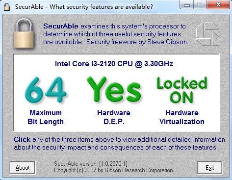 CPU是否支持虚拟化技术,我们这里需要用到一款小软件:SecurAble。他可以帮我们测试CPU是否支持虚拟化。单文件,运行即可检测出效果: