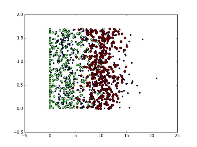 import numpy as np ...... datingLabels = array(datingLabels) idx_1 = np.where(datingLabels==1) p1 = ax.scatter(datingDataMat[idx_1,0],datingDataMat[idx_1:,1],market = '*',color = 'r',label='1',s=20 idx_2 = np.where(datingLabels==2) p2 = ax.scatter(datingDataMat[idx_2,0],datingDataMat[idx_2:,1],market = 'o',color ='b',label='1',s=10 idx_3 = np.where(datingLabels==3) p3 = ax.scatter(datingDataMat[idx_3,0],datingDataMat[idx_3:,1],market = '+',color ='g',label='1',s=30 plt.legend(loc = 'upper right') plt.show()