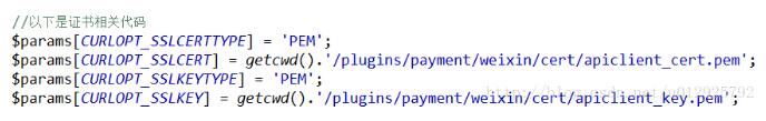 $params[CURLOPT_SSLCERT] = getcwd().'/plugins/payment/weixin/cert/apiclient_cert.pem';//绝对路径