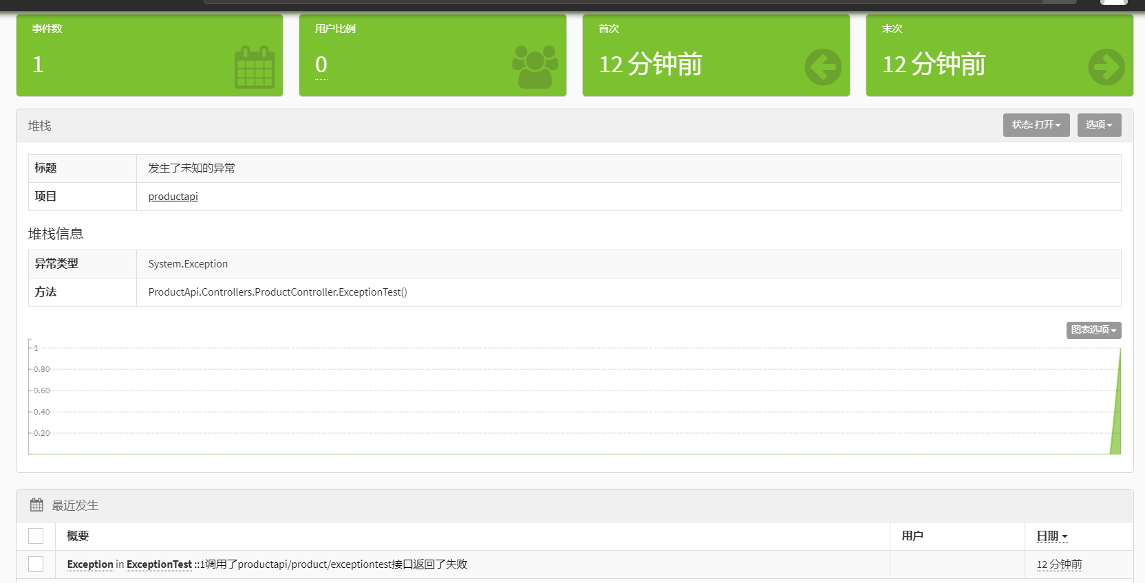 运行起来项目调用一下这段代码之后,查看Exceptionless,如果环境配置啥的都是正确的话,会展示出一下效果,点击All菜单展示出来的信息会比较全