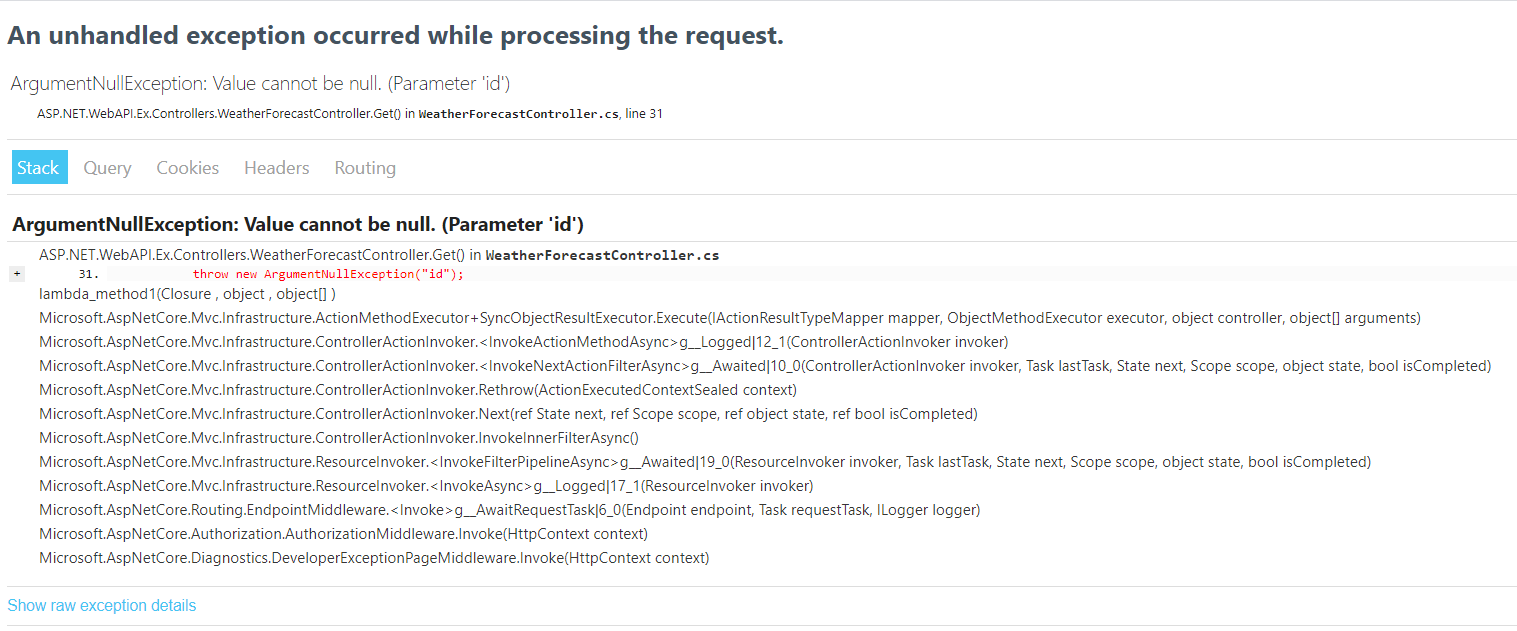 UseDeveloperExceptionPage:当发生异常时,展示开发人员异常信息页。如图