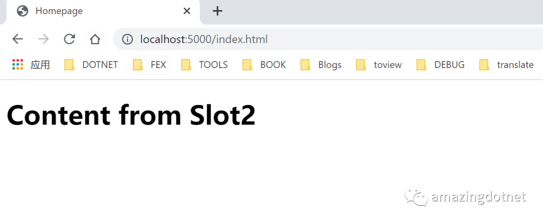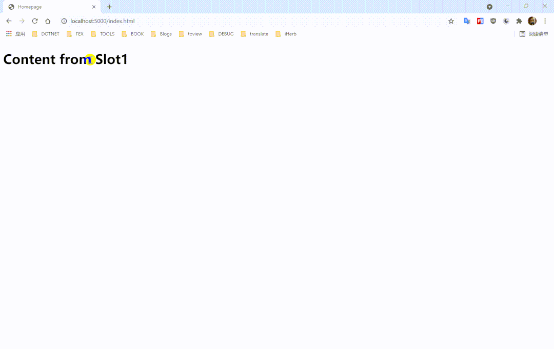 这个 API 做的事情很简单,在 Slot1 和 Slot2 之间进行切换,如果原来是 Slot2 则切换成 Slot1 否则切换成 Slot2,修改配置之后调用一下 Reload 以触发配置更新,删除配置文件中的 CurrentSlot 配置,重新运行示例,查看 http://localhost:5000/index.html,还是看到的 Slot1 中的内容,然后我们调用一下 /redeploy 接口来动态切换一下配置,然后再次刷新页面就会看到 Slot2 中的内容,再调用一下 redeploy 之后刷新页面就会变回 Slot1 中的内容