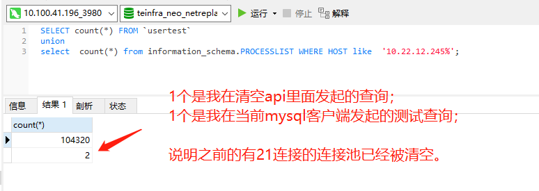 3. 调用/clearpoolapi,清空连接池