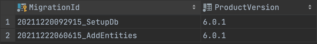 $ dotnet ef migrations add AddEntities -p src/TodoList.Infrastructure/TodoList.Infrastructure.csproj -s src/TodoList.Api/TodoList.Api.csproj Build started... Build succeeded. [14:06:15 INF] Entity Framework Core 6.0.1 initialized 'TodoListDbContext' using provider 'Microsoft.EntityFrameworkCore.SqlServer:6.0.1' with options: MigrationsAssembly=TodoList.Infrastructure, Version=1.0.0.0, Culture=neutral, PublicKeyToken=null Done. To undo this action, use 'ef migrations remove'