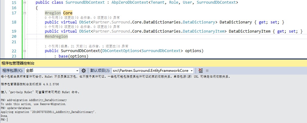 加入到DbContext中,添加一个迁移并更新数据库。