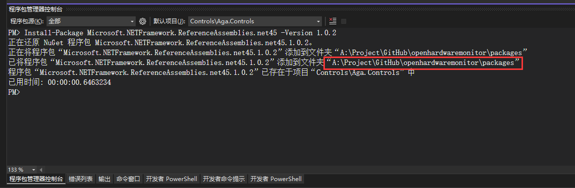 将PM:后的代码复制进程序包控制台并回车(VS顶部菜单栏 -> 视图 -> 其他 -> 程序包控制台)