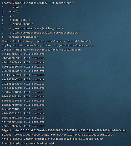 docker run -u root --rm -d -p 8080:8080 -p 50000:50000 -v jenkins-data:/var/jenkins_home -v /var/run/docker.sock:/var/run/docker.sock jenkinsci/blueocean