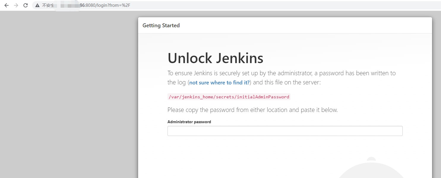jenkins首次启动会进入安装向导,并且自动生成一个管理员账户,但是密码是输出到日志里的。因为我是通过docker启动的,所以要查看容器日志,语句: