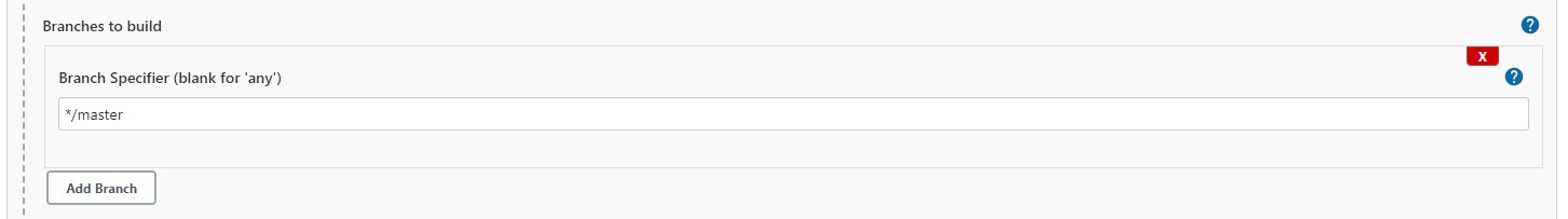 然后在下面设置分支,这一项决定jenkins拉取哪个分支的代码(如果不写就是任意分支):