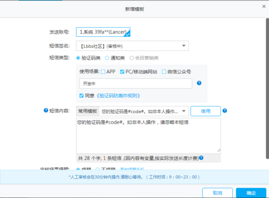 值得注意的是这个模板必须和你到时候用 easy-sms 包的时候,设定的短信内容必须和这个一模一样,不然会报错的。