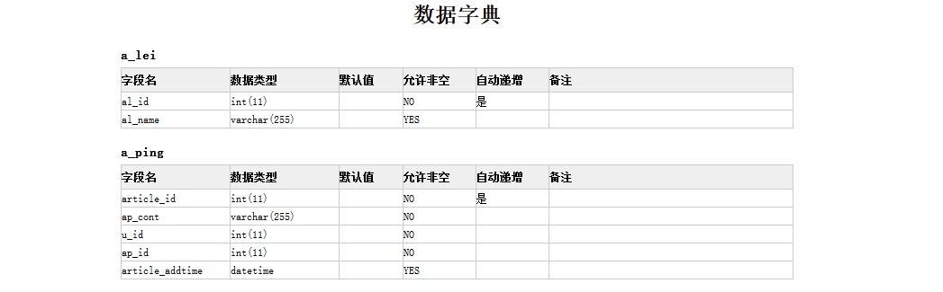 以上就是落寞山水最近收集整理的关于PHP实现生成数据字典功能示例的全部内容,更多相关PHP实现生成数据字典功能示例内容请搜索靠谱客的其他文章。