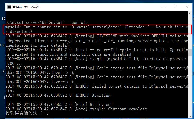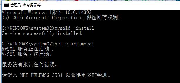 这时候报错了,提示无法启动,3534 ,我们通过 mysqld --console命令来查看错误日志