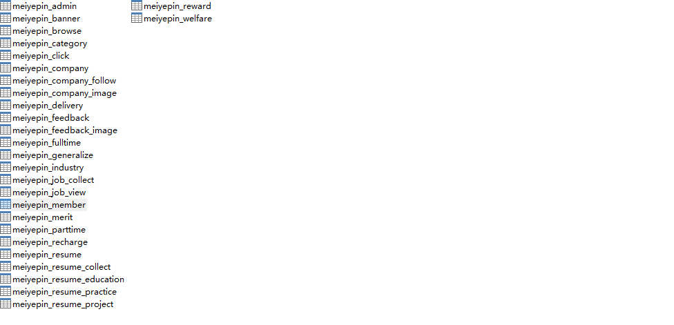 我们可以将两个表连起来一起查询数据,我现在有两张表,一个是feedback表和member表,如图:
