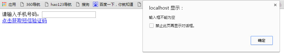 alert('输入框不能为空');
