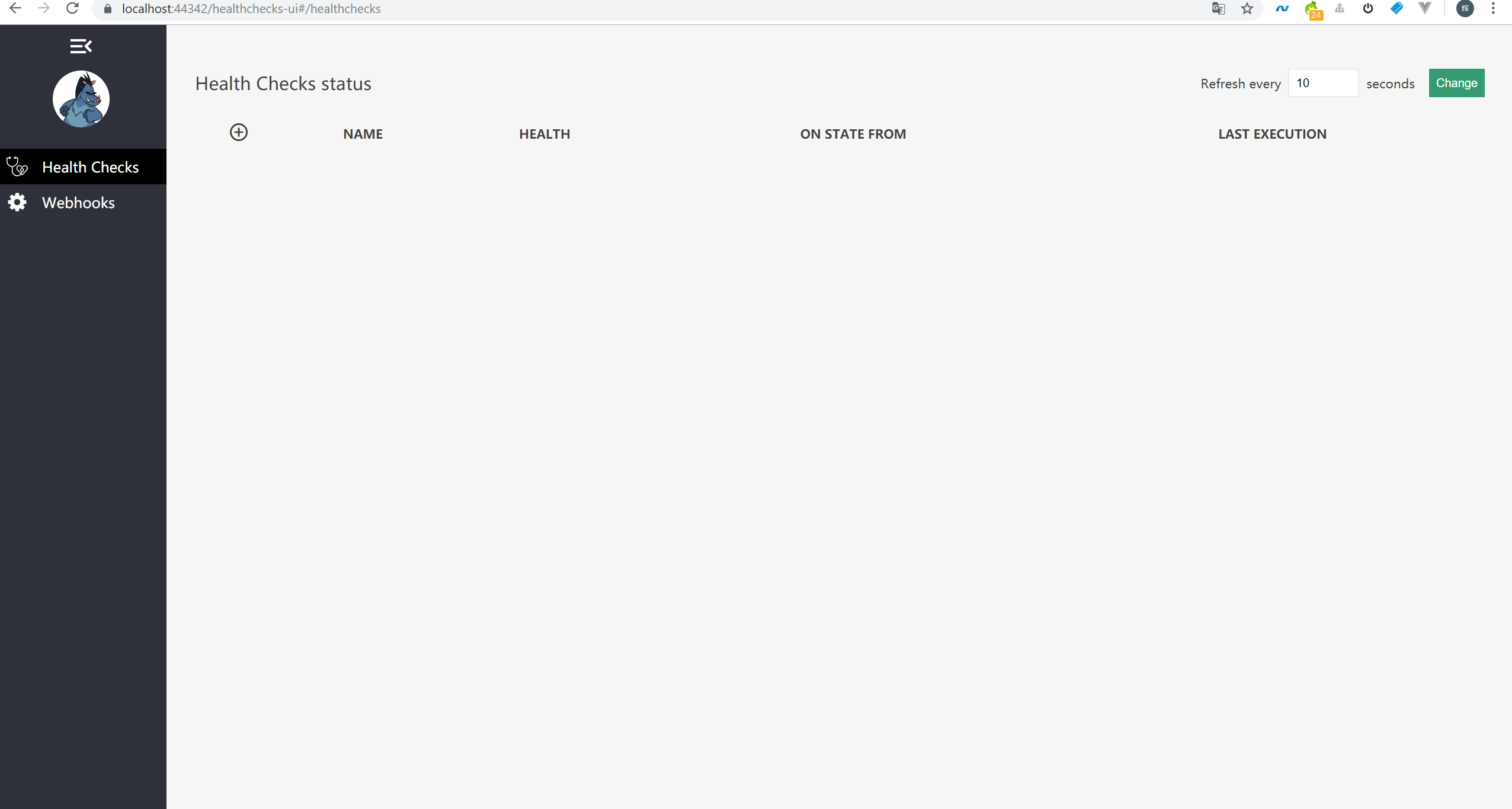 配置完成后,您可以运行应用程序并指向/ healthchecks-ui地址,该端点显示如下的UI.