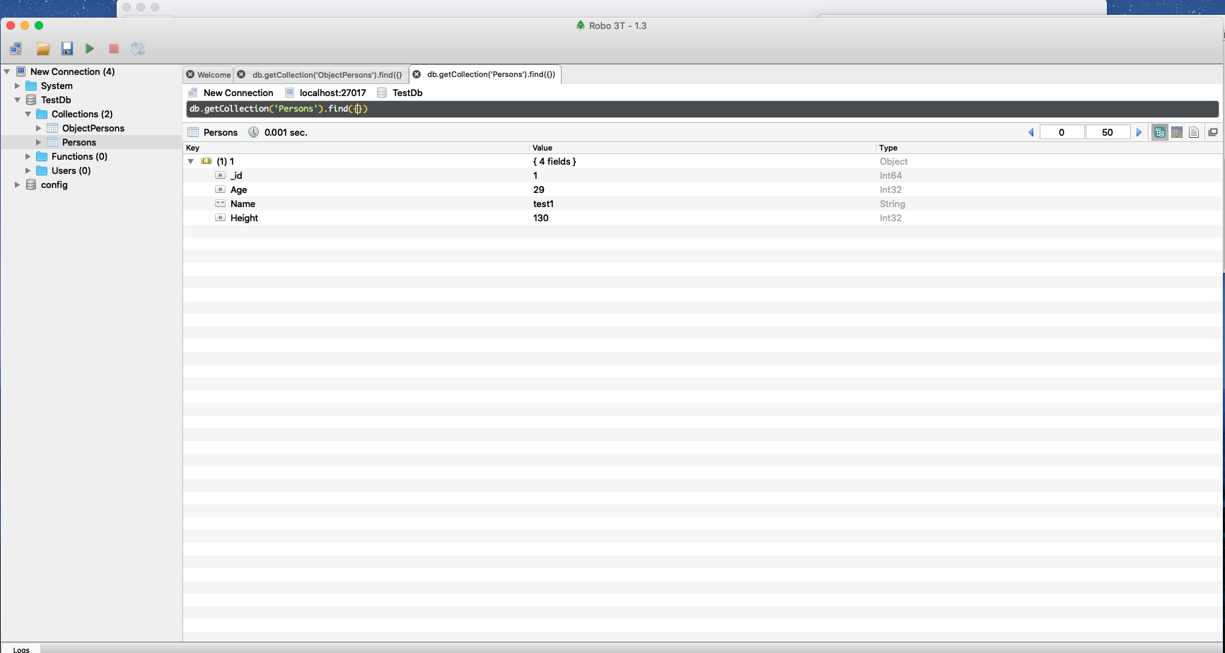 IMongoCollection<ObjectPerson> collection1 = database.GetCollection<ObjectPerson>("ObjectPersons");//大致相当于表