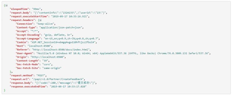 以上所述是小编给大家介绍的.net core webapi通过中间件获取请求和响应内容的方法,希望对大家有所帮助,如果大家有任何疑问请给我留言,小编会及时回复大家的。在此也非常感谢大家对靠谱客网站的支持!
