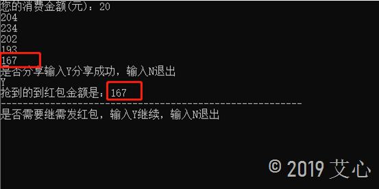 Console.WriteLine("抢到的到红包金额是:" + robbedRedPacket.Amount);