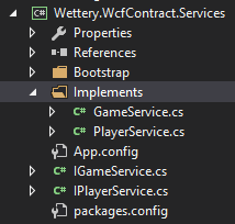 新建一个WCF服务类库项目,在其中添加两个WCF服务:GameService,PlayerService