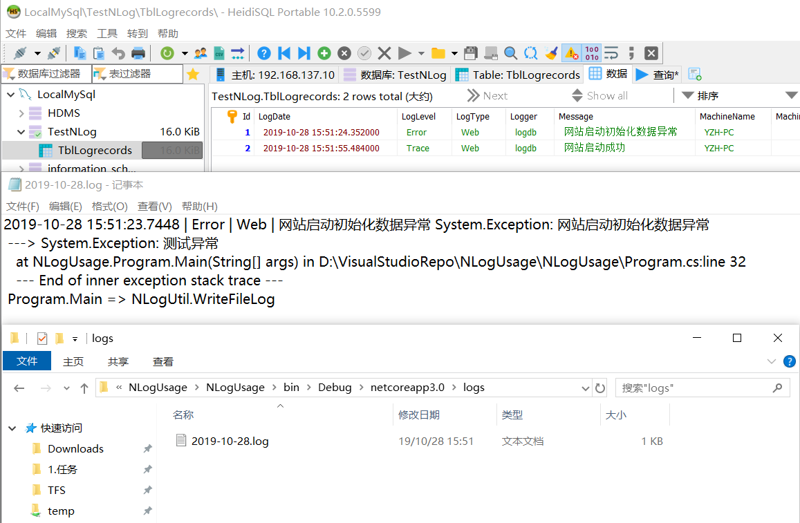 这里数据库为TestNLog: