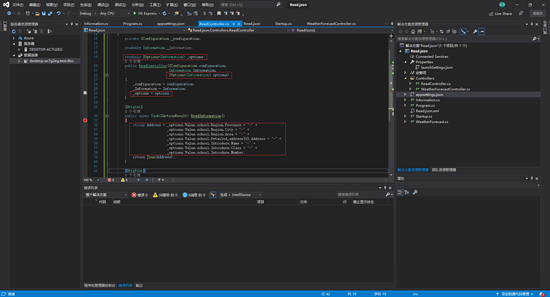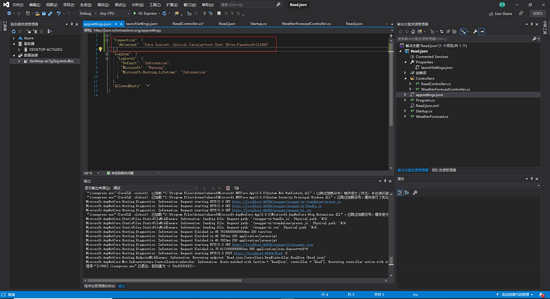 我们先在appsettings.json中配置好数据库连接字符串,然后读取它