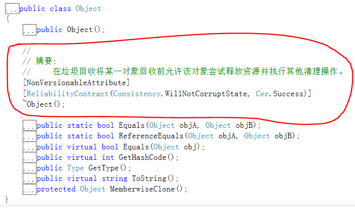 看到这当然会很奇怪,不是说有Finalize()方法,在哪,逗我?莫惊讶,其实这里的 ~Object() 就是Finalize(),只是一个语法糖罢了。