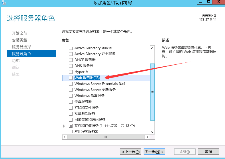 然后选择角色服务器,根据需求勾选。(我都勾上了,为了避免出现问题,反正用不用都先加上没多大坏处(~ ̄▽ ̄)~)。