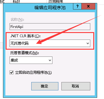 将.NET CLR版本的下拉框选择为【无托管代码】,确定。