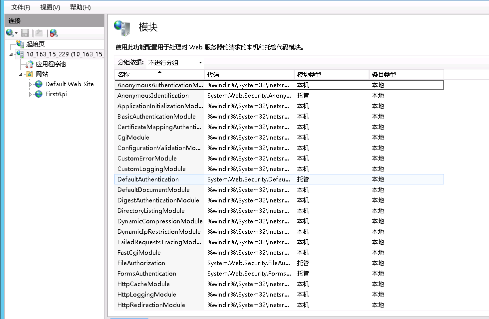 等待重新安装完成之后,重启IIS管理器,再次打开【模块】,发现已经有了。