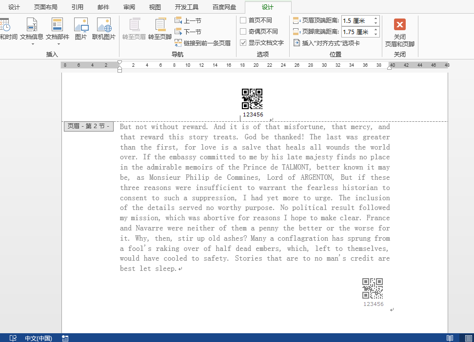 //添加二维码图片到Word页眉