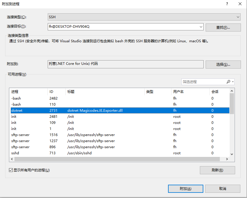 以上就是畅快毛豆最近收集整理的关于通过Windows Visual Studio远程调试WSL2中的.NET Core Linux应用程序的方法的全部内容,更多相关通过Windows内容请搜索靠谱客的其他文章。