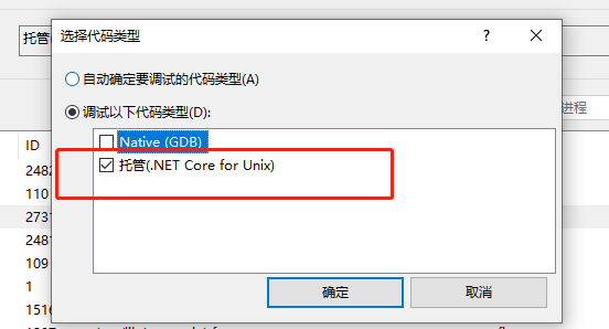 选择.NET Core应用程序,然后单击附加选择托管调试器: