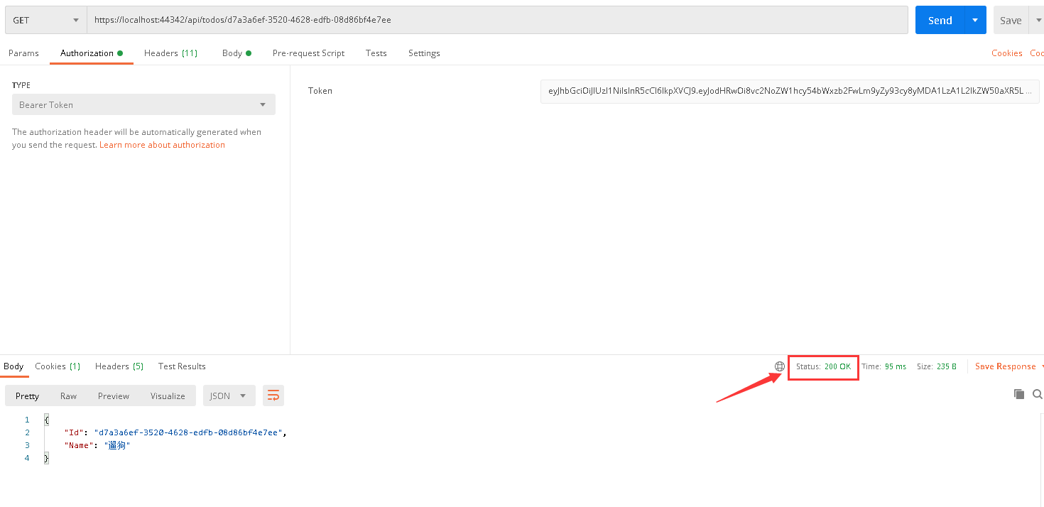 接下来我们访问一下GetAccessToken接口,拿到Token,在访问GetTodo接口时放入Token,我们可以看到访问成功了。