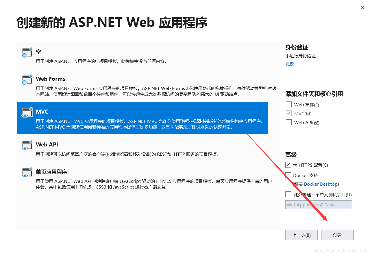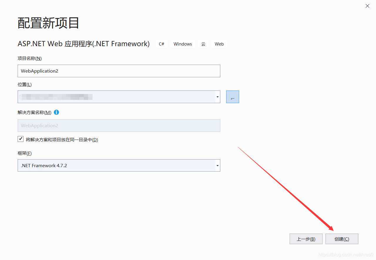 选择] ASP.NET Web应用程序(.NET Framework)