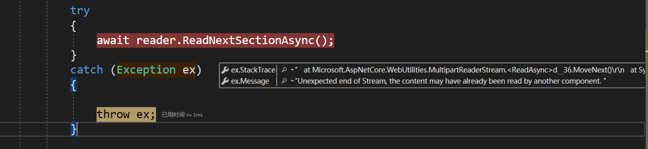 在利用内置APi读取FormData数据时,在.NET Core 3.x会抛出如下异常: