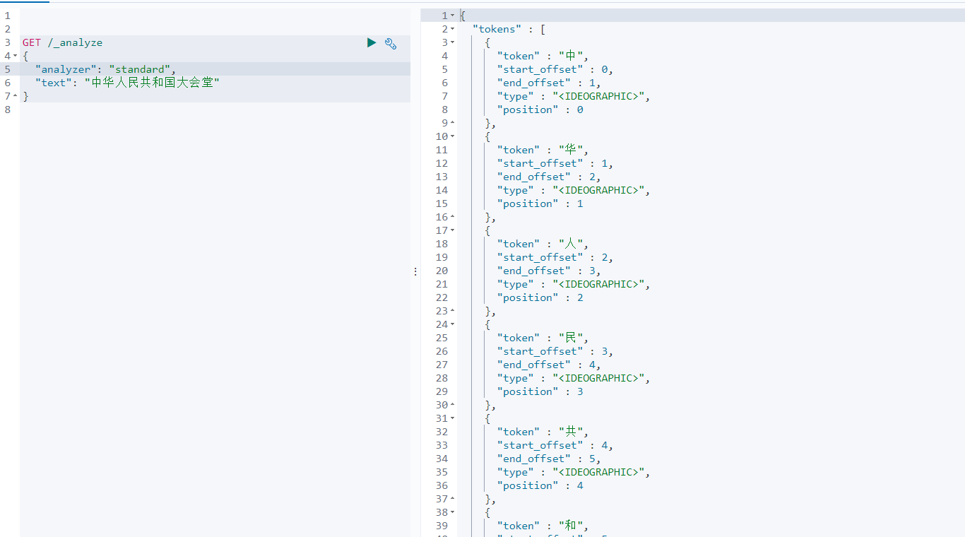 两种分词模式的区别在于分词粒度的粗细问题。而standard分词直接按单个字符分割。