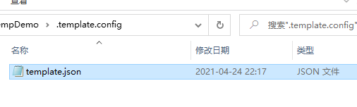 在项目根文件夹中创建文件夹:.template.config 并在目录下创建 template.json。如下图: