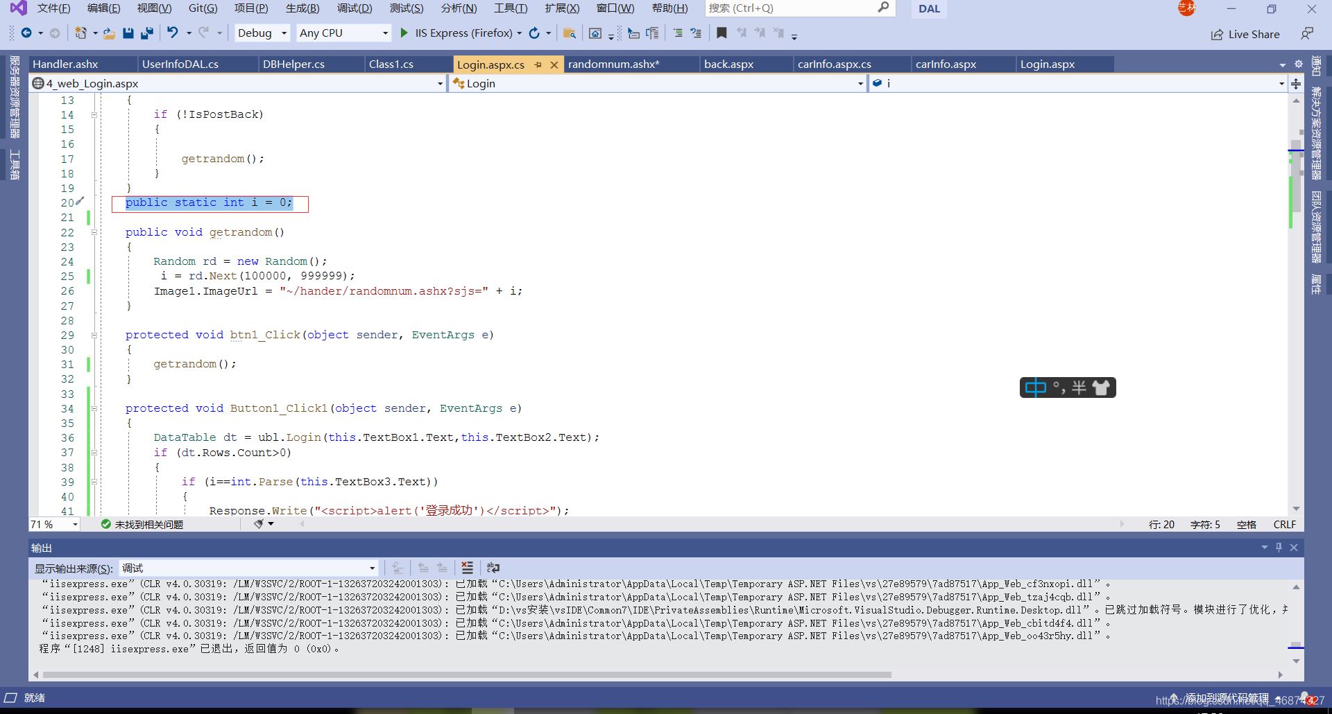 记得引入头文件,上面代码都有注释可以自己看看,需要注意的是,我们这里的随机数是aspx后台传过来的,使用Response.request
