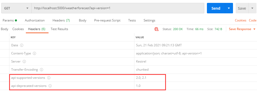 调用方式:通过调用路径传入版本号,如:http://localhost:5000/api/v1/weatherforecast