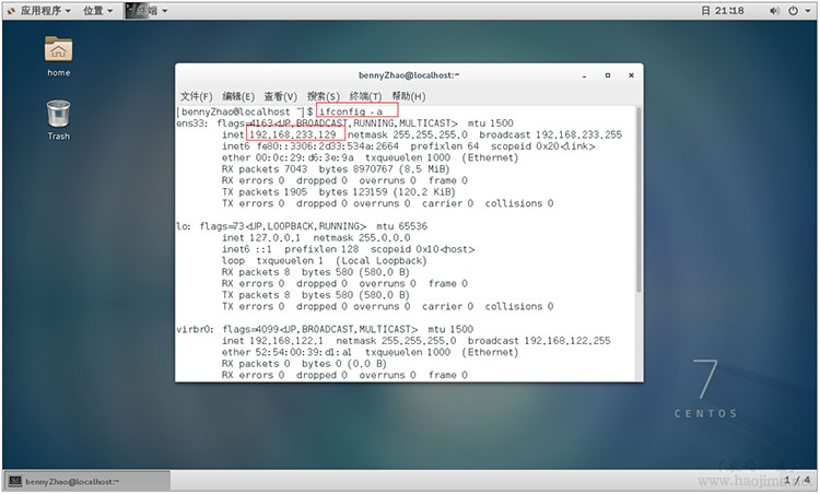 开始第一个命令。查看IP