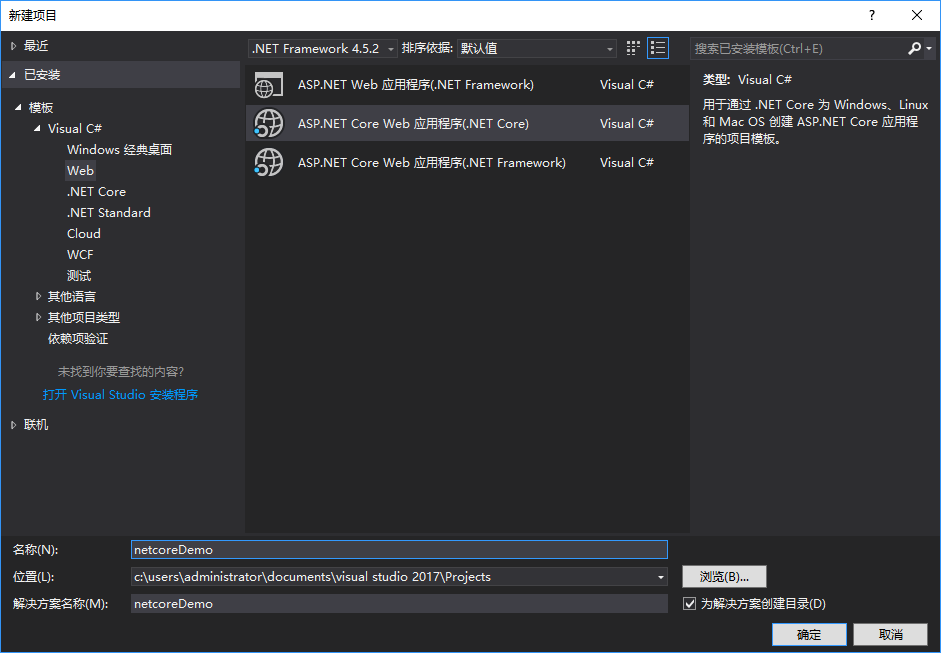 打开VS2017 新建一个.net core 项目