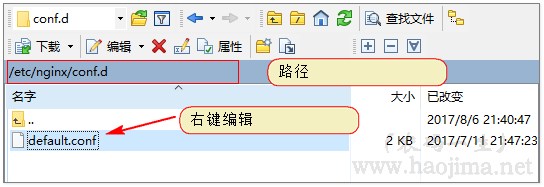 打开路径 /etc/nginx/conf.d