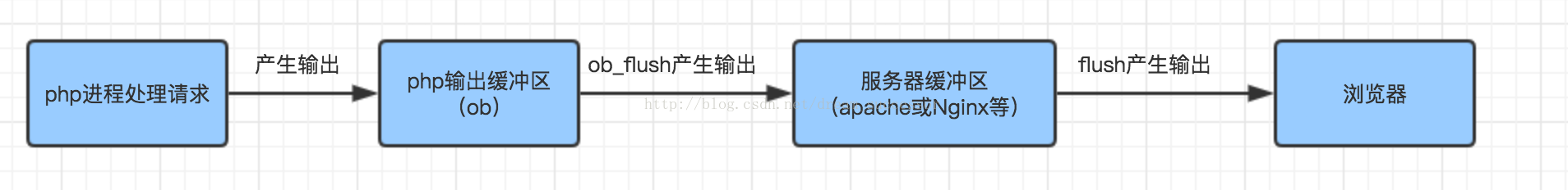 ②当PHP自身的缓冲区接到指令,指示要输出缓冲区的内容时,将会把缓冲区内的数据输出到服务器上, 服务器接受到PHP输出的数据,然后再把该数据存在到服务器自身的缓冲区内,等到输出;