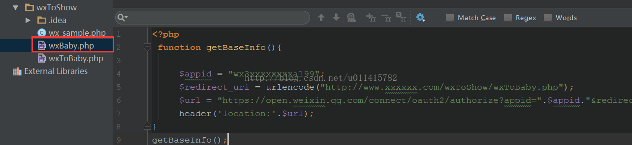 注意 appid 的正确填写,其次就是 redirect_uri 的地址确定,我提供的可作参考。再者对于下面代码中的url中“scope=snsapi_userinfo”可以自行控制,需要分辨 snsapi_base 和 snsapi_userfo 的简单区别,百度可有很多具体解释。